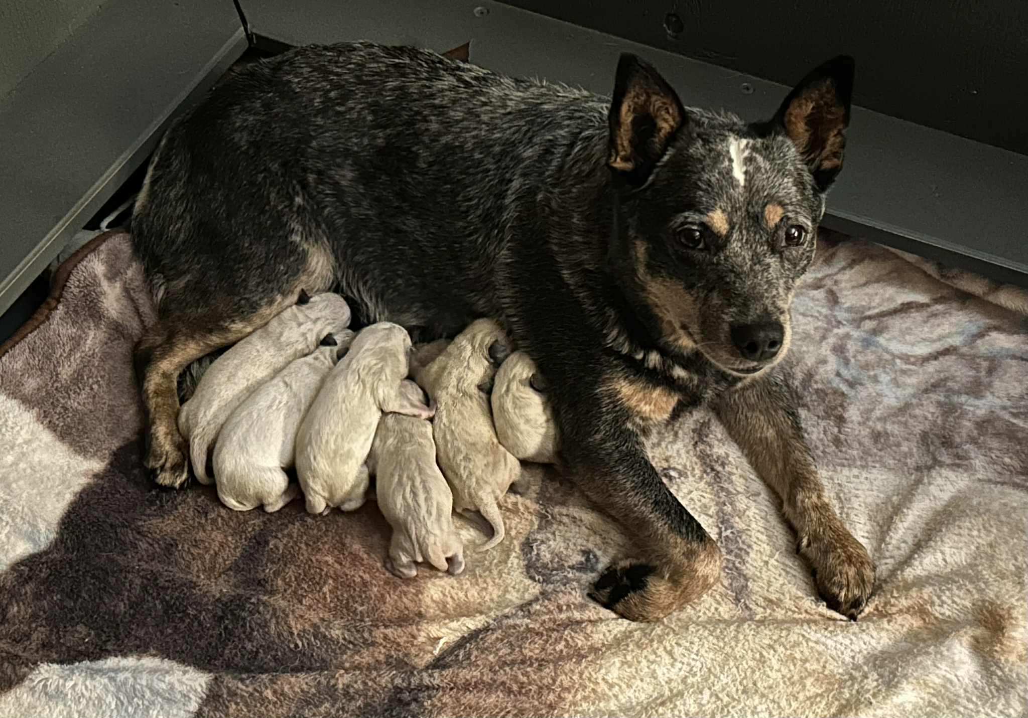 Australian Cattle Dog Puppies 2025 litter has arrived on September 23, 2025. 3 males and 4 females. Contact for availability. Kurpas N Larkspur Leap of Faith Priestcreek's L'il Sip O Whiskey.